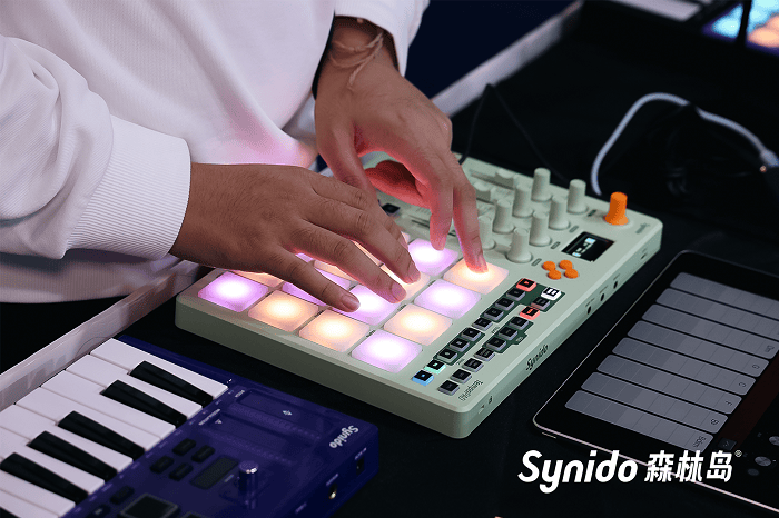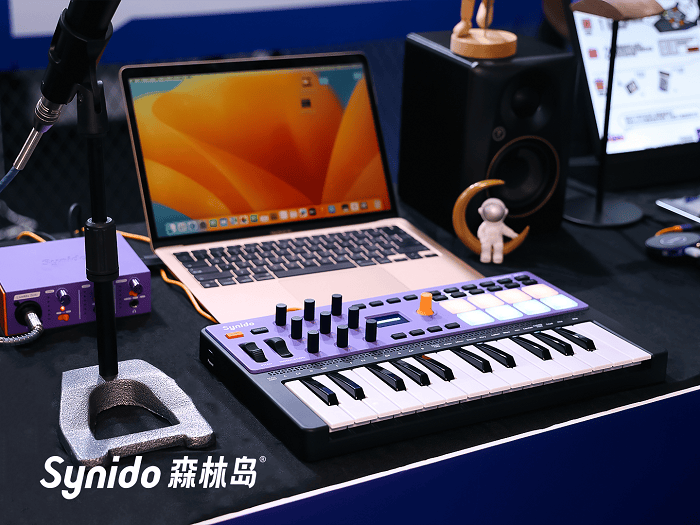 本次展会上,森林岛于今年7月新上市的25键MIDI键盘——“MIDI漫游者” 成为其展位的明星产品。这款产品以其无线设计、内置电池及标志性的高级磨砂紫配色,精准切中了当下音乐创作者对移动化、便捷性与审美个性化的核心需求,吸引了大量专业观众驻足体验,充分展现了森林岛在细分市场持续创新的技术实力与设计美学。